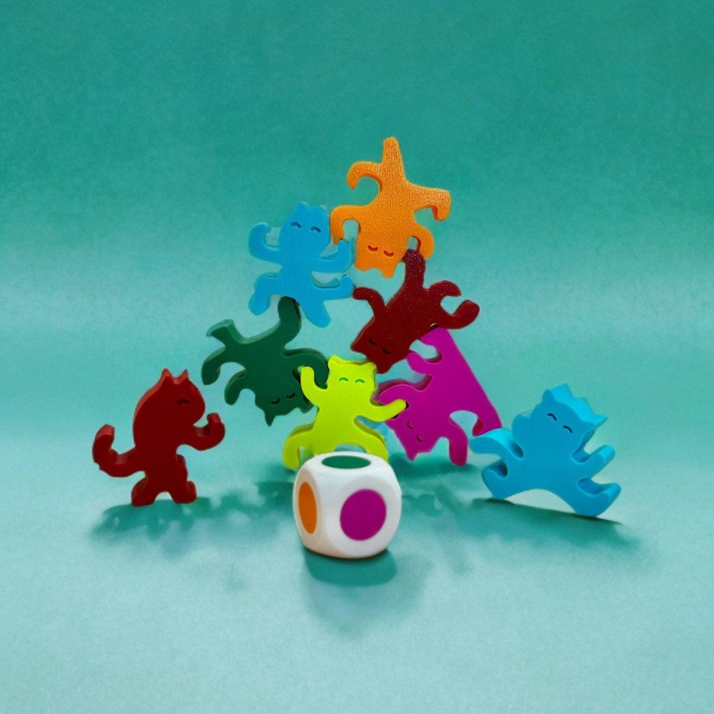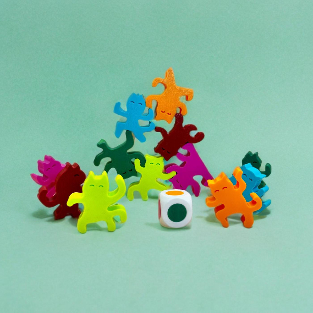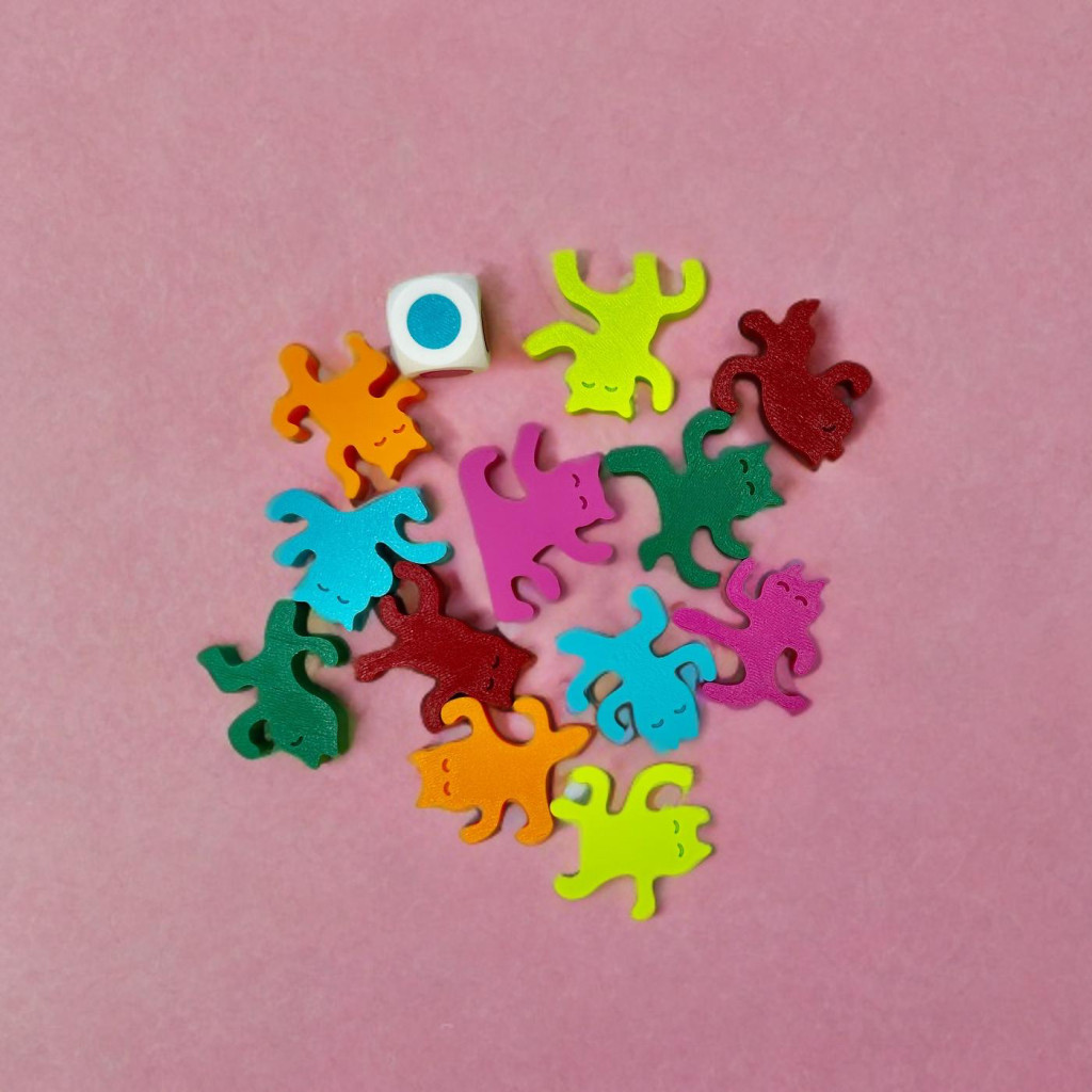 A Társasjáték tartalma: 12 db különböző formájú macska 6 színben.