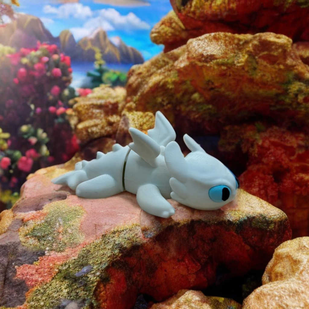 Különleges, 3D nyomtatott fehér sárkányfigura a népszerű animációs filmek elegáns és bájos nőstény sárkányát idézi meg.