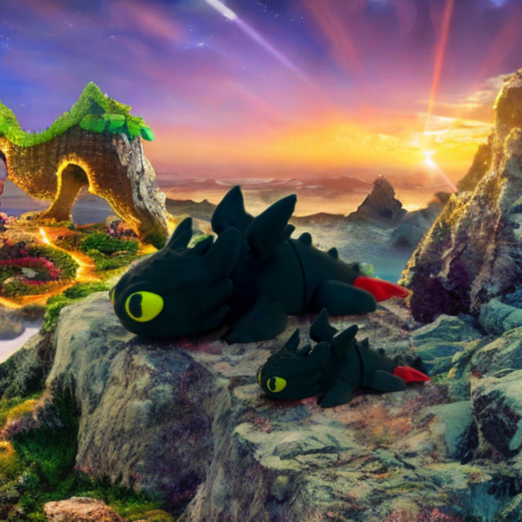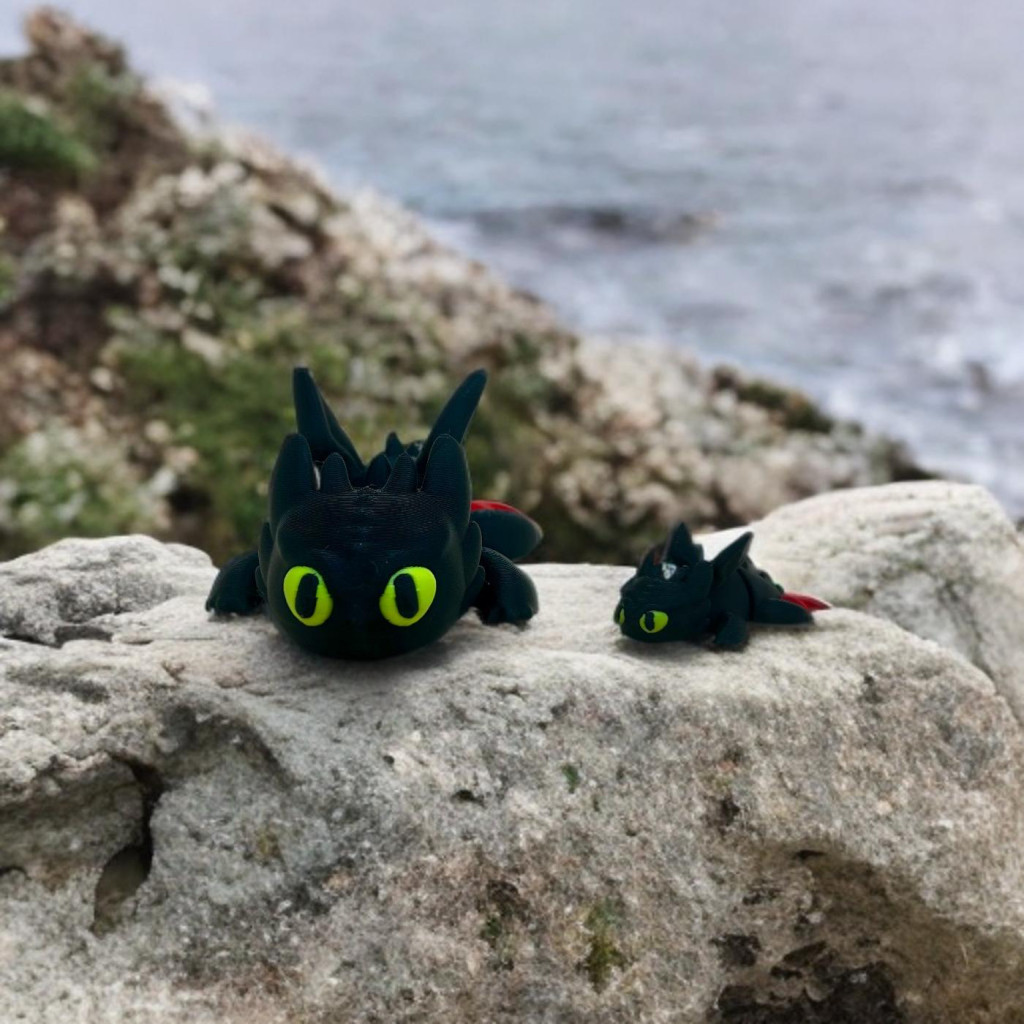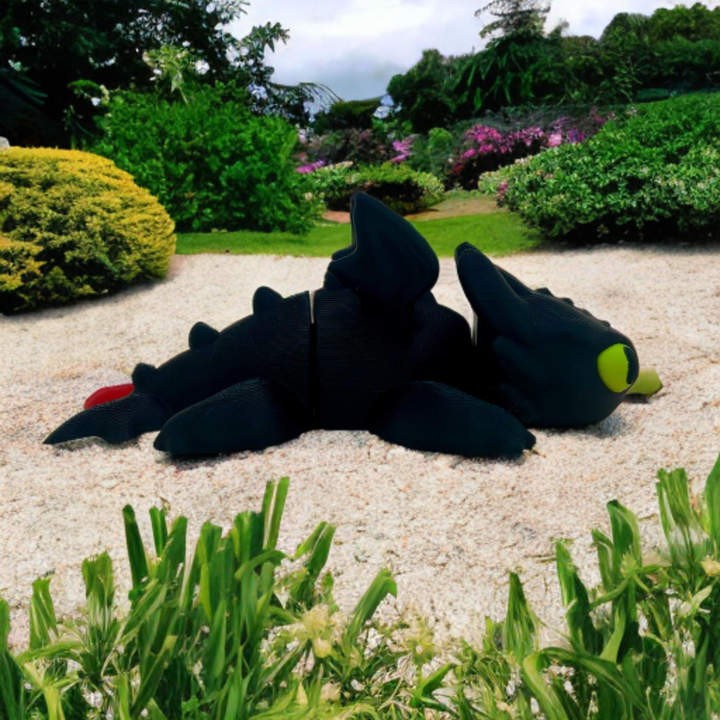 Varázslatos, részletgazdag 3D nyomtatott figura, amelyet a népszerű mesefilm ikonikus fekete sárkánya inspirált.