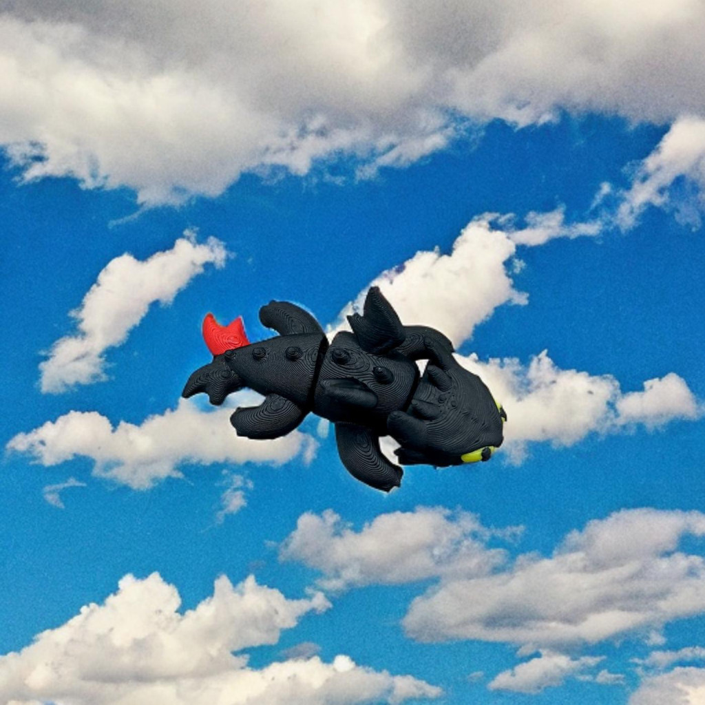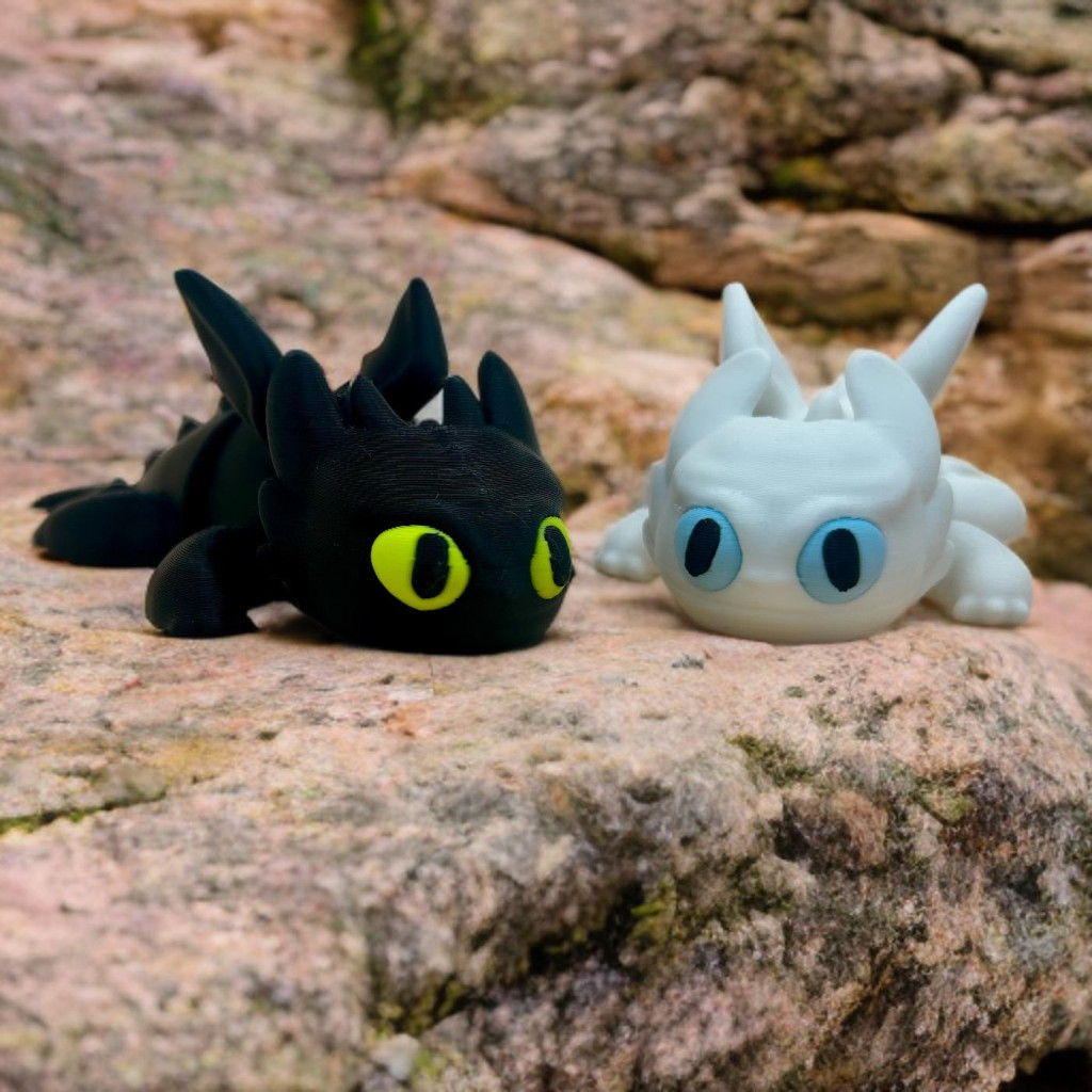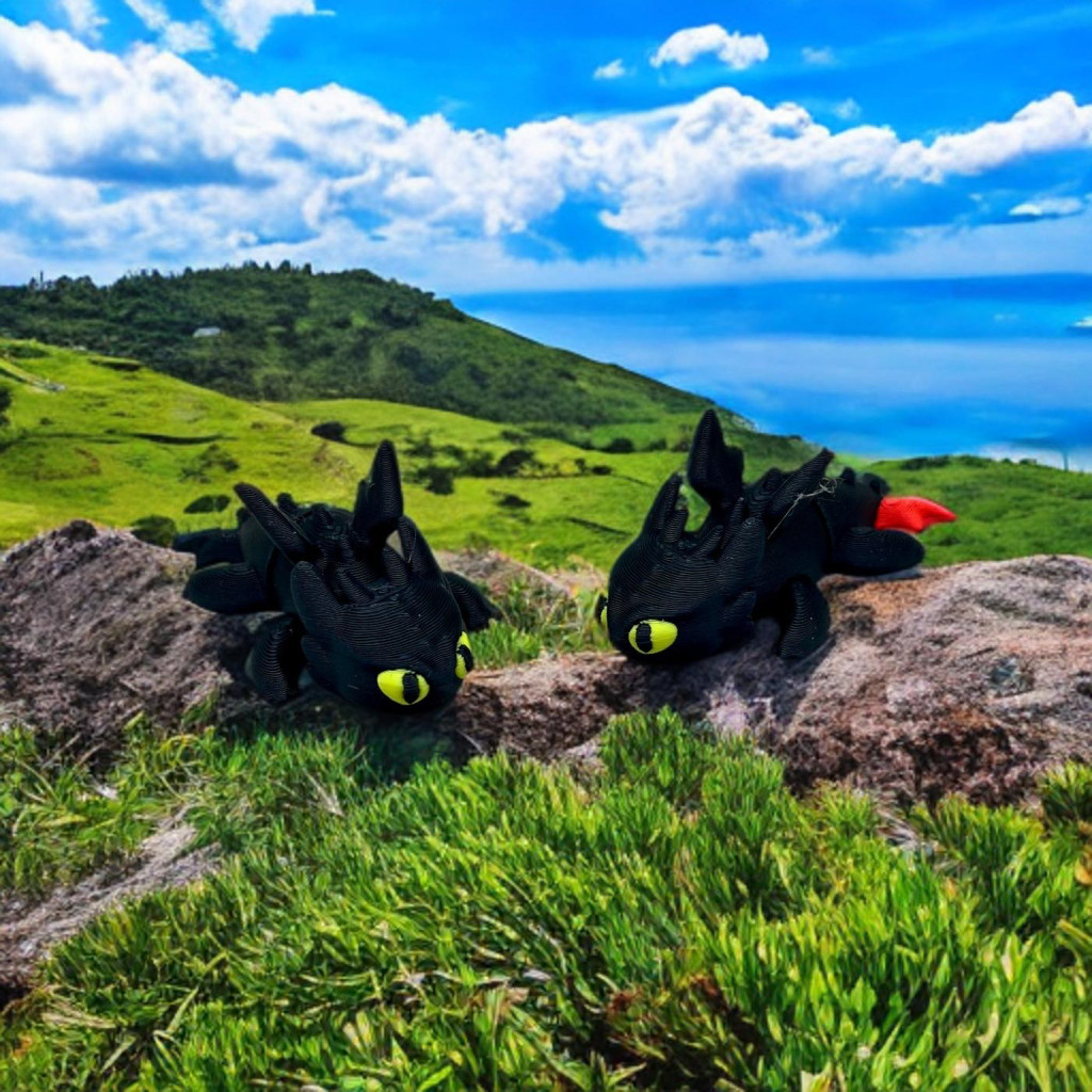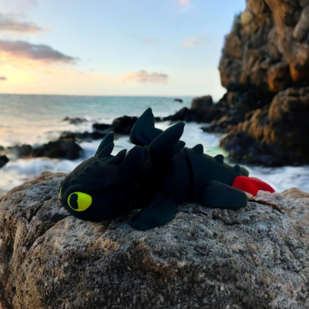 Varázslatos, részletgazdag 3D nyomtatott figura, amelyet a népszerű mesefilm ikonikus fekete sárkánya inspirált.