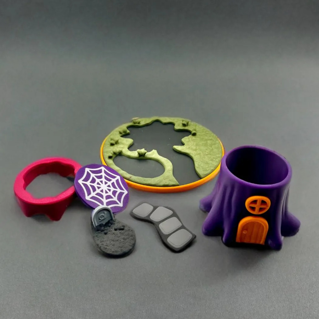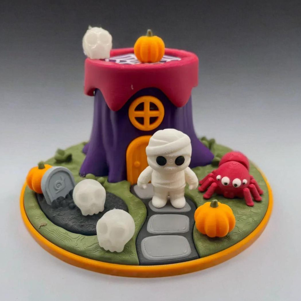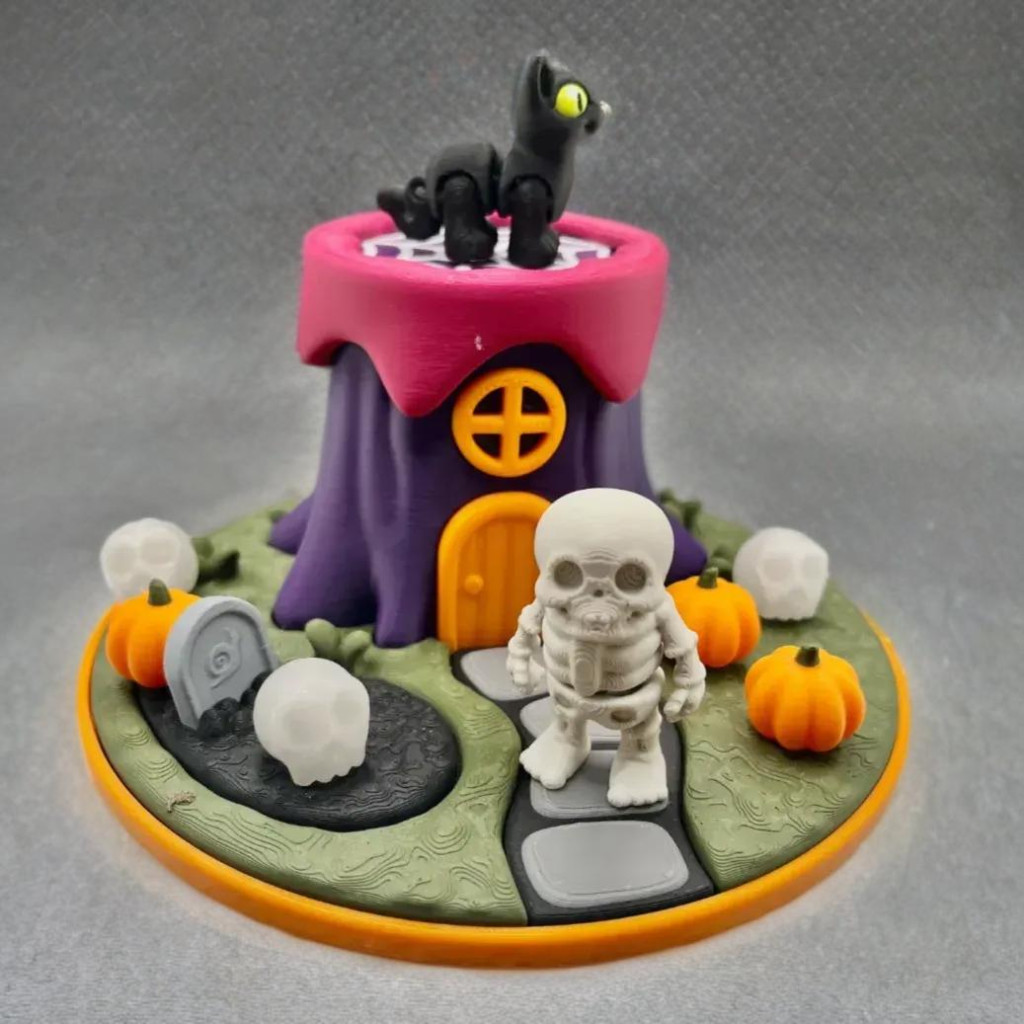 Halloween Tuskó Dioráma + 2 db véletlenszerűen kiválasztott halloween mini figura.