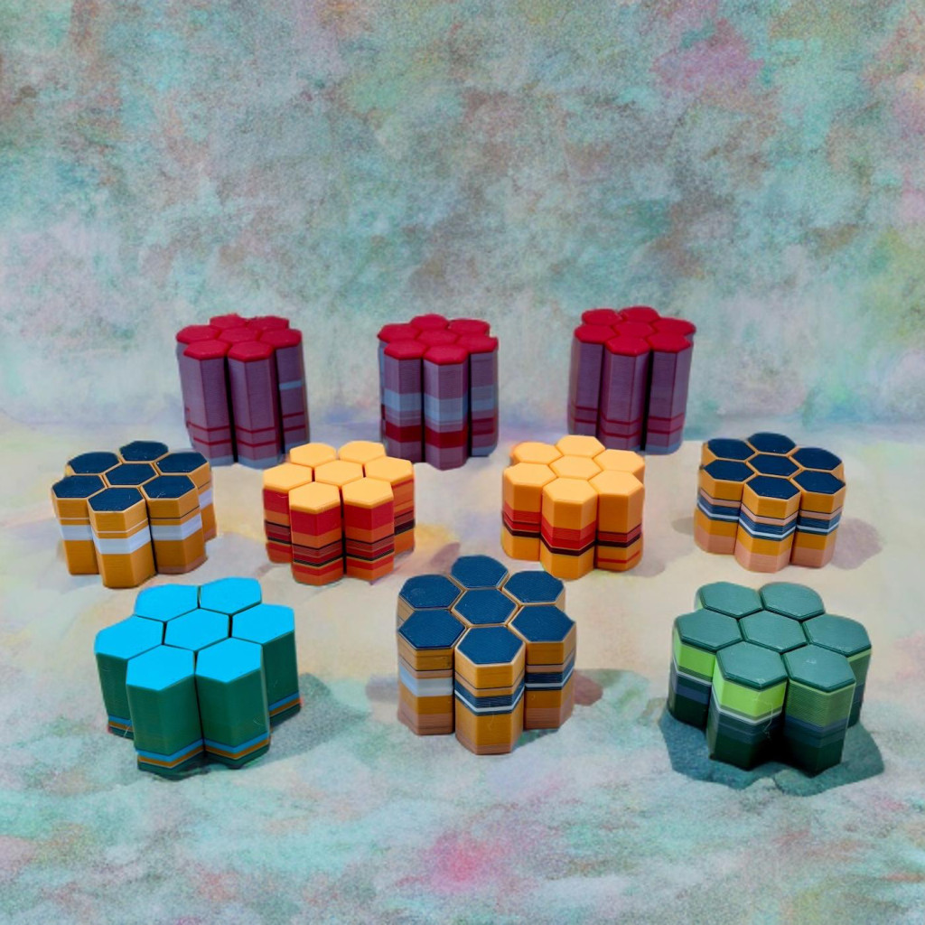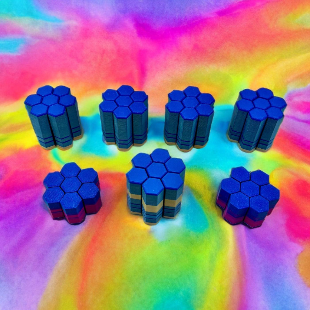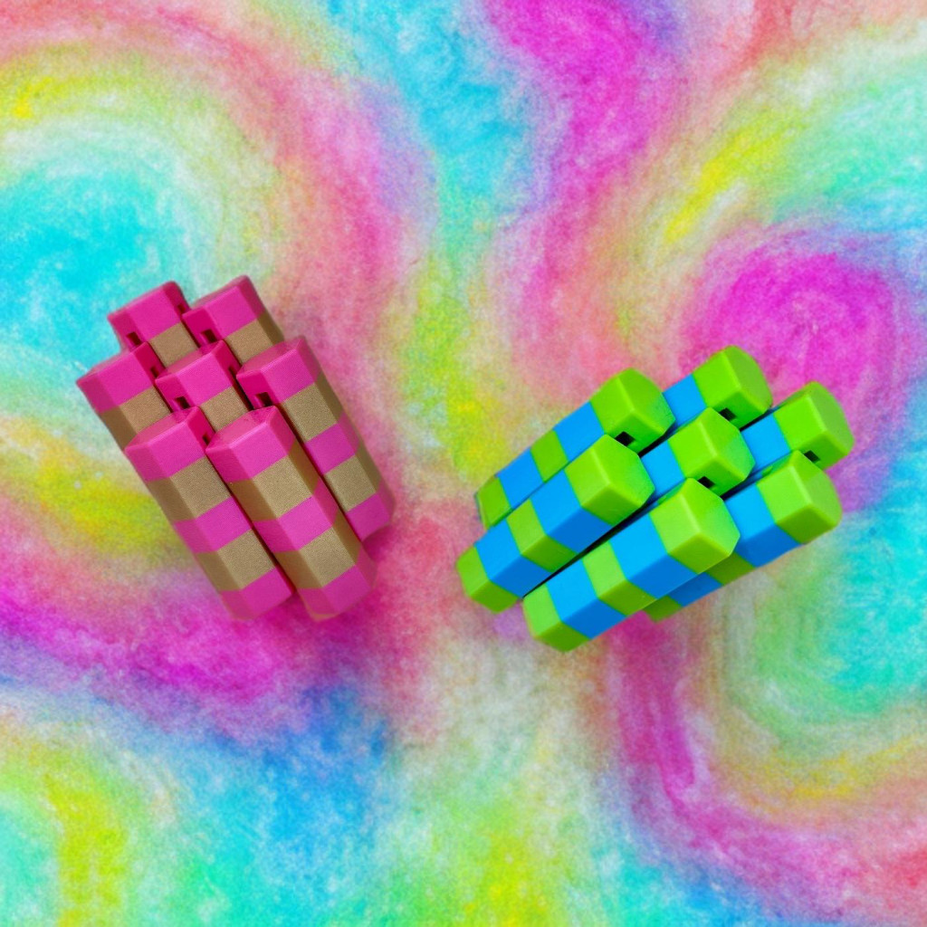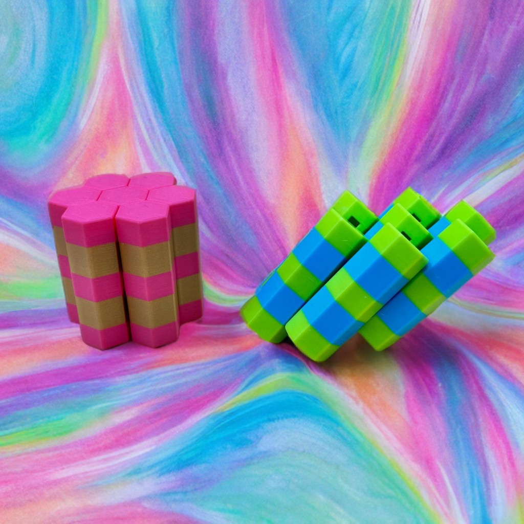 Apró hatszög tornyok, amik halkan csúsznak fel-le, miközben a véletlenszerű színek és csíkok mindig új mintát rajzolnak ki. Könnyű, kézre áll, és minden egyes mozdulat egy picit varázslatosabbá teszi a napod.