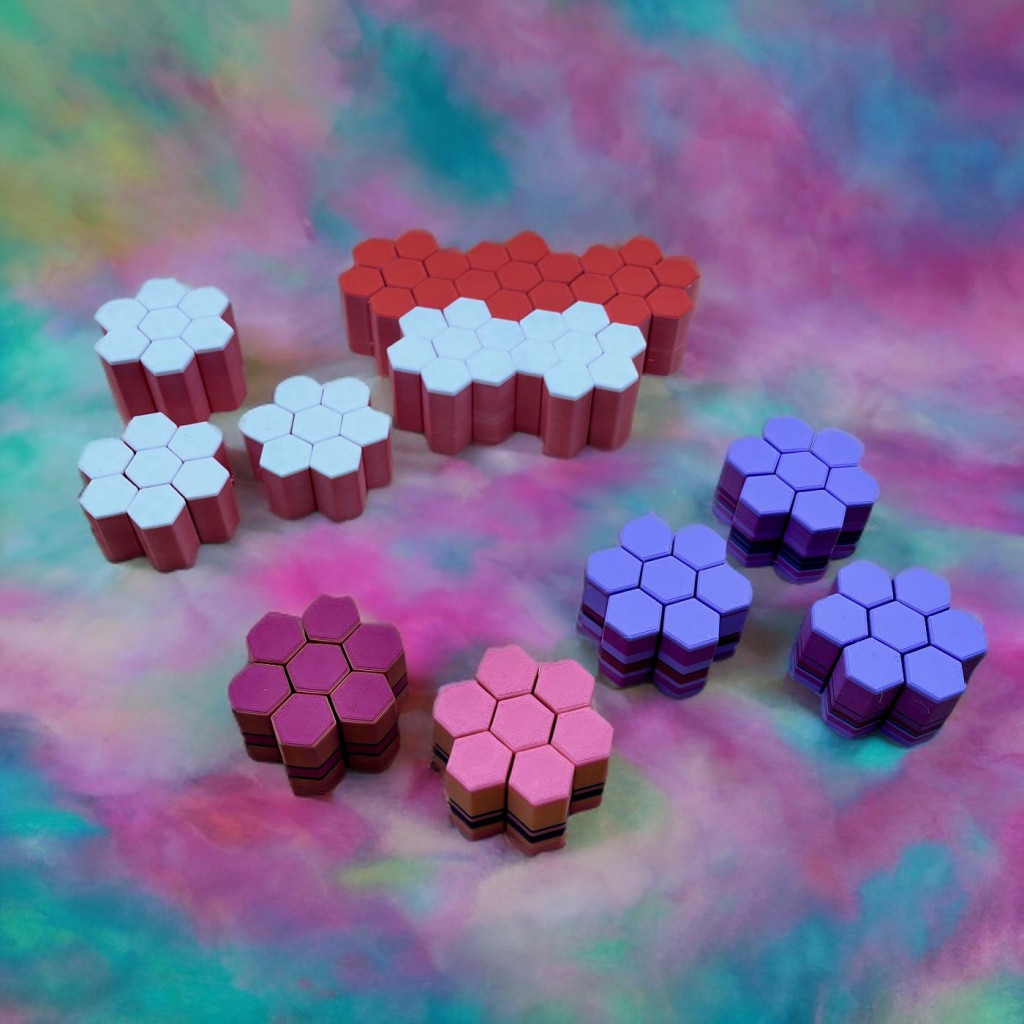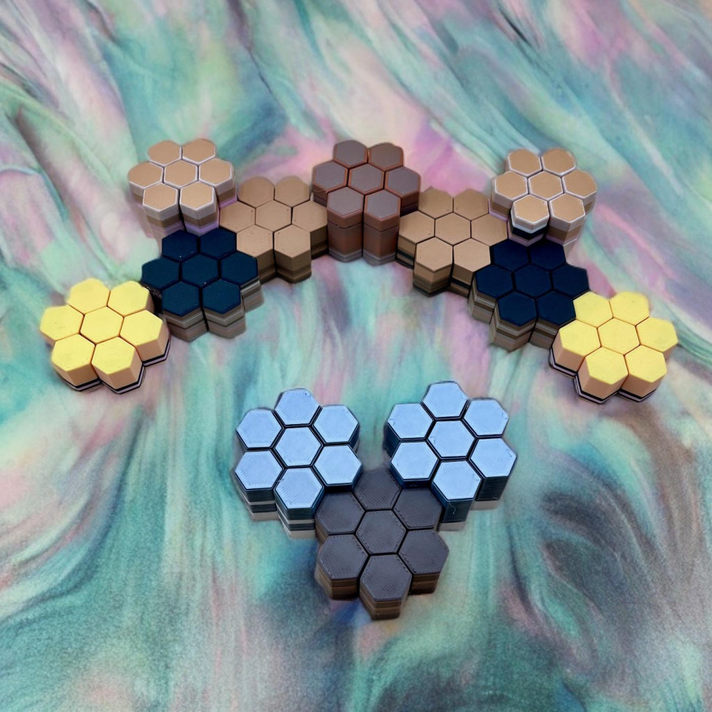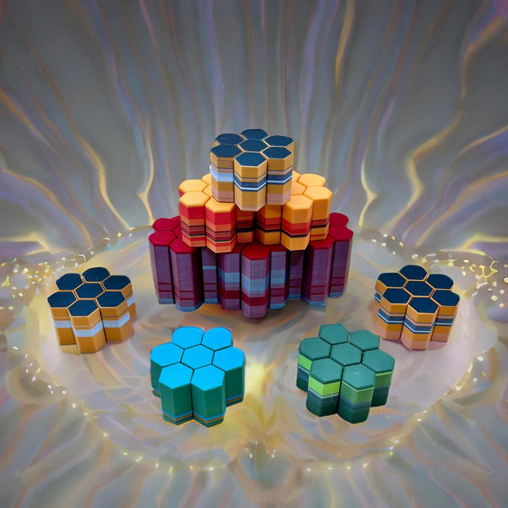 Apró hatszög tornyok, amik halkan csúsznak fel-le, miközben a véletlenszerű színek és csíkok mindig új mintát rajzolnak ki. Könnyű, kézre áll, és minden egyes mozdulat egy picit varázslatosabbá teszi a napod.