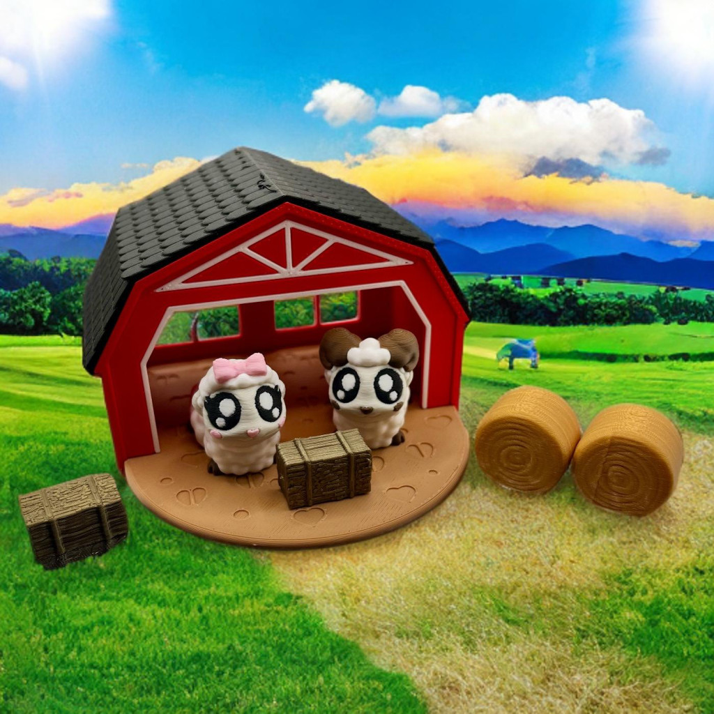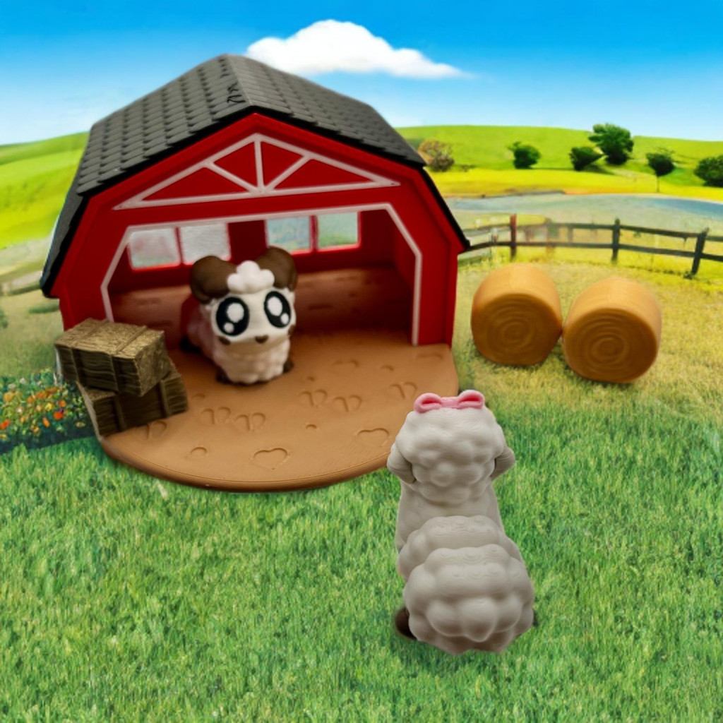 Ez a cuki Mini Istálló, két nagyszemű, aprólékosan kidolgozott báránykával, melyek életet visznek a játékba.