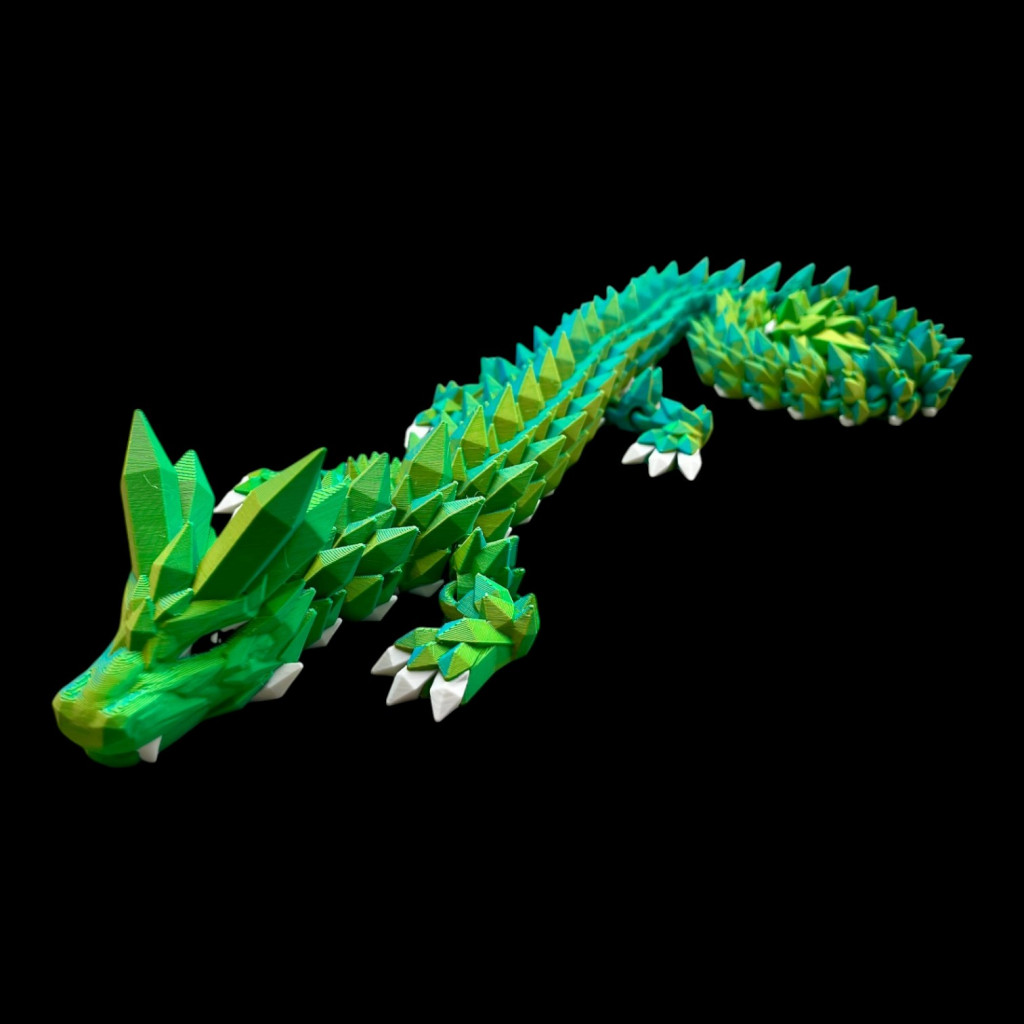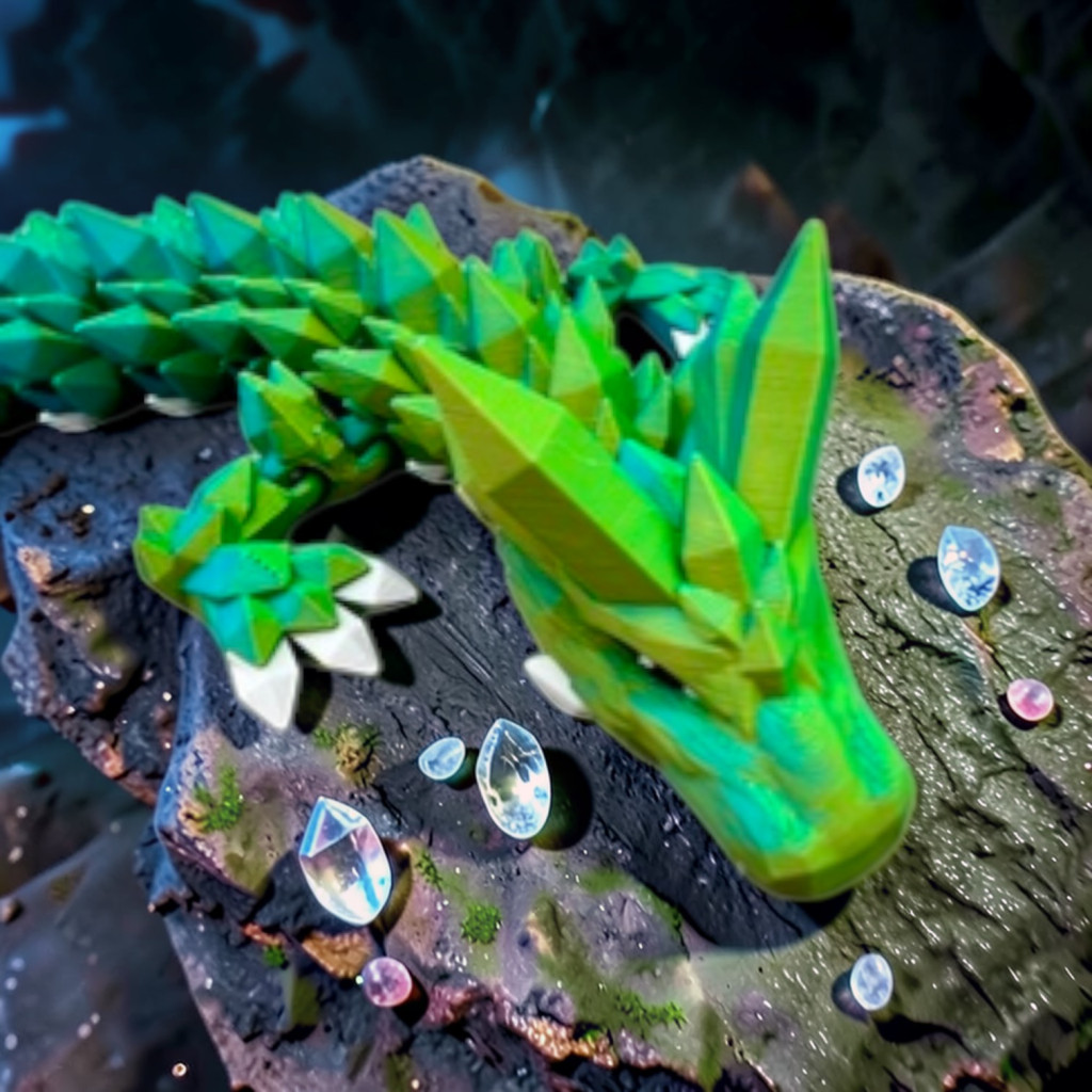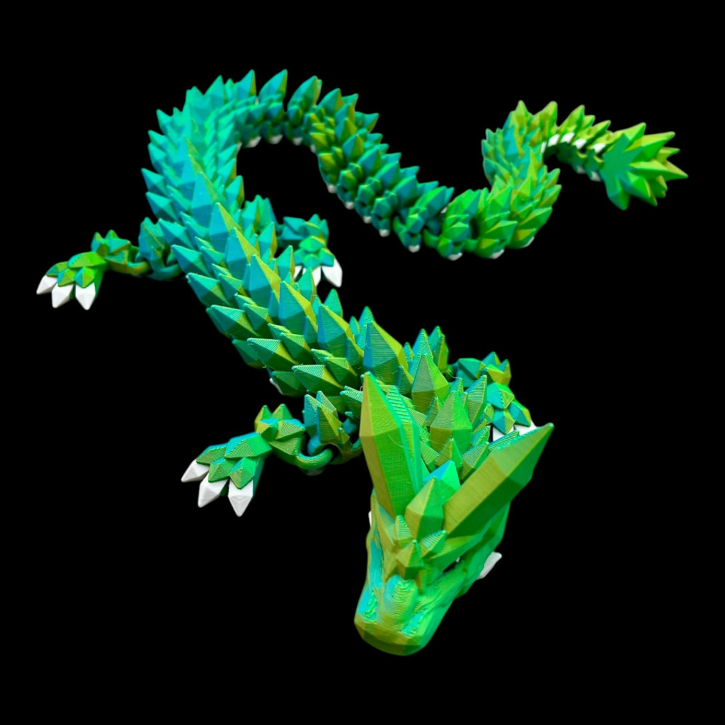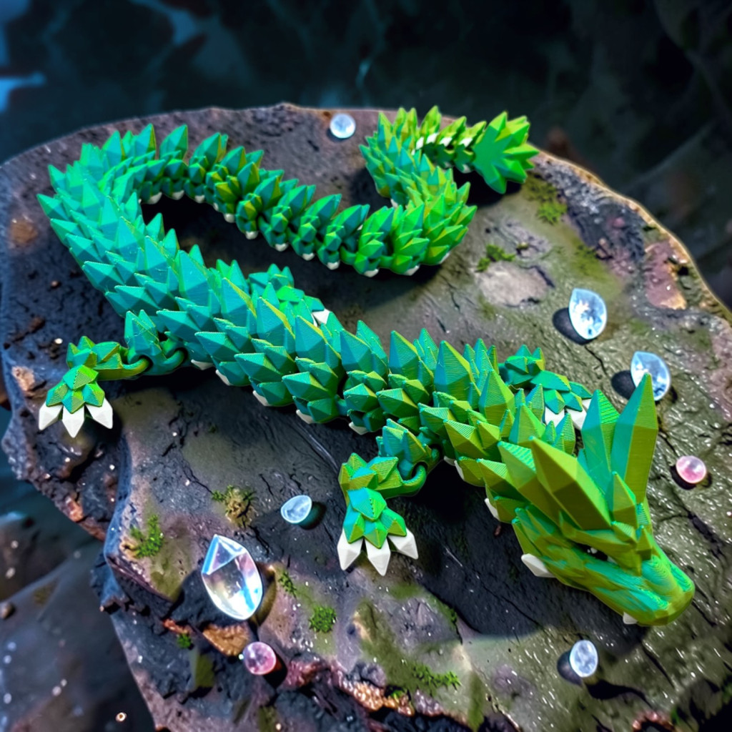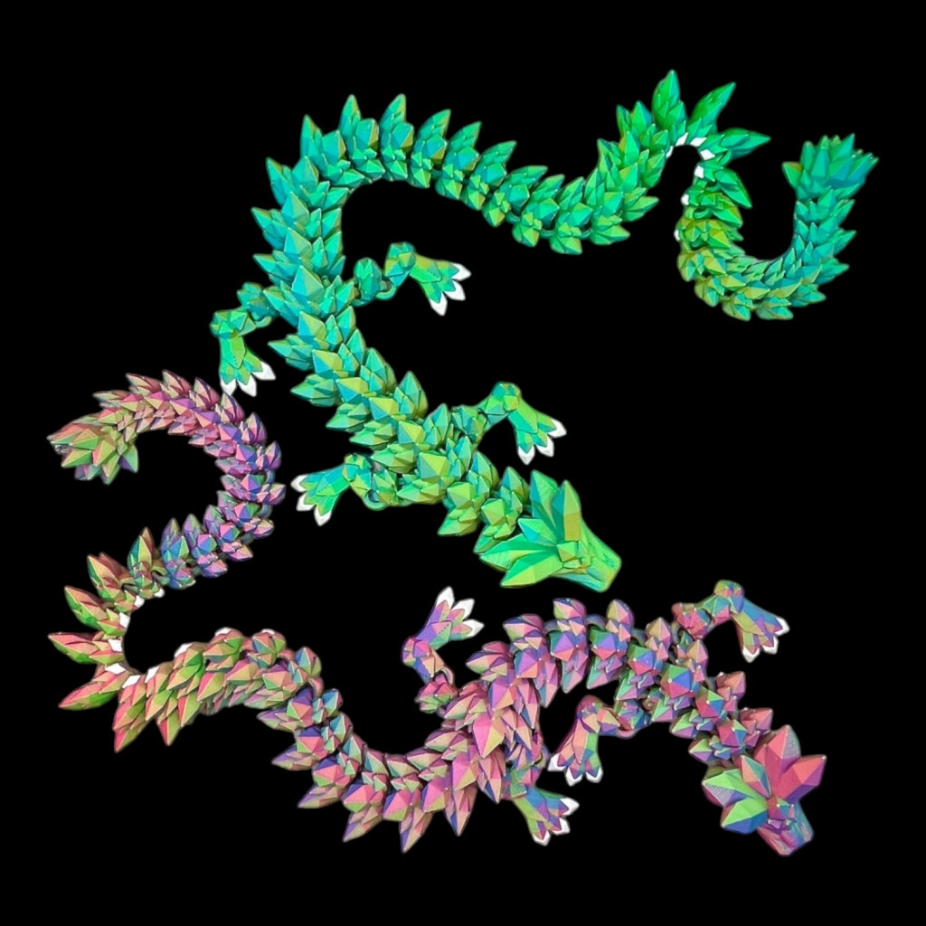 Ez a 3D nyomtatott kristálysárkány valódi látványelem: a színes árnyalatok minden fényben másként csillannak meg, mintha a sárkány saját varázsereje kelne életre.