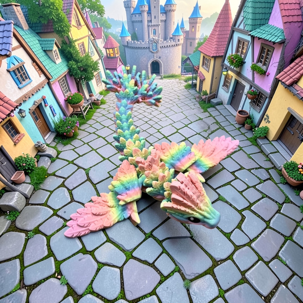 -a világ felett húzódik egy láthatatlan ösvény, amit csak a legkülönlegesebb lények látnak és ezen az ösvényen színesen kavarogva siklik egy különleges teremtmény, a szivárvány repülő kígyó. Teste karcsú, tollai a szivárvány minden színében pompáznak, akár a napfény a buborék felületén. Ha akarod repül hangtalanul, kígyózva a levegőben, mintha a mozdulat maga lenne a varázslat...Éld át képzeletedben te is ezt a varázslatot...