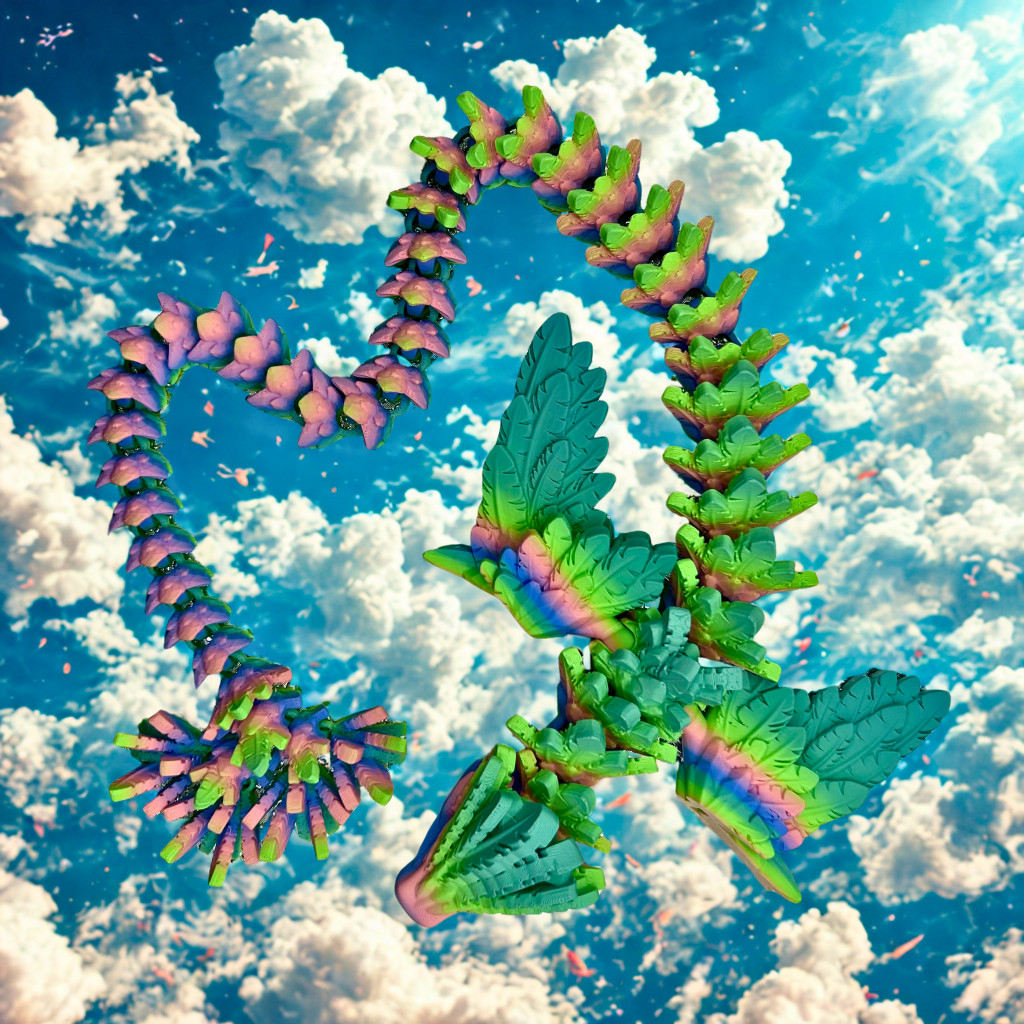-a világ felett húzódik egy láthatatlan ösvény, amit csak a legkülönlegesebb lények látnak és ezen az ösvényen színesen kavarogva siklik egy különleges teremtmény, a szivárvány repülő kígyó. Teste karcsú, pikkelyei a szivárvány minden színében játszanak, akár a napfény a buborék felületén. Ha akarod repül hangtalanul, kígyózva a levegőben, mintha a mozdulat maga lenne a varázslat...Éld át képzeletedben te is ezt a varázslatot...