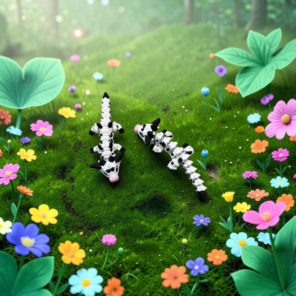 Ez a kis Tehén Sárkánygyík egyszerre bolondos és varázslatos: fekete-fehér mintái a tehenekre emlékeztetnek, de gyík testével villámgyorsan suhan a réten és a kavicsok között.